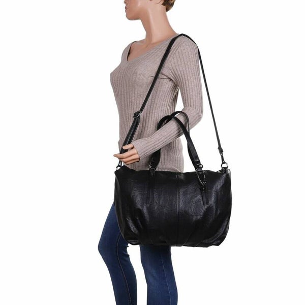 Grote schoudertas in zwart kunstleer.